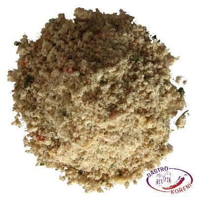 Sůl max.31%, maltodextrin, cukr, glutaman sodný (E 621), cibule sušená, palmový tuk, mrkev, pastinák, česnek, petržel list, uzené aroma, E 150c amoniakový karamel. Může obsahovat stopy celeru, hořčice a sezamu.