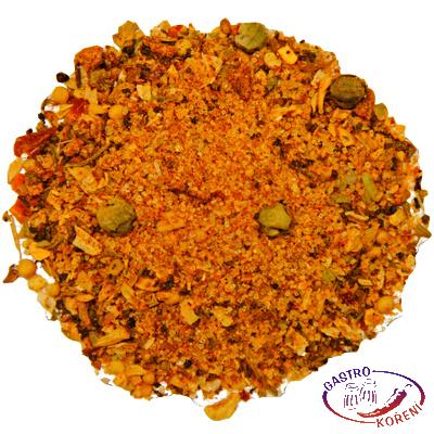Sůl jemná (max.29%), koření (paprika, česnek, cibule, pepř zelený, koriandr, pepř černý, oregano, saturejka, bazalka, šalvěj), zvýrazňovač chuti a vůně E 621. Může obsahovat stopy lepku, celeru, hořčice a sezamu.