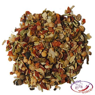 Všestranná kořenící směs, bez přidaného glutamátu E 621 a soli, vhodná při marinování, grilování, rožnění a pečení včech druhů mas, do nádivek, minutkové kuchyně, výtěčně chutná v dušené nebo grilované zelenině, do zapečených brambor a těstovin.
