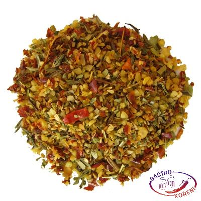Neostrá kořenící směs vhodná na pizzu, špagety a podobné vařené nebo zapečené těstoviny, do salátů, dresingů, jogurtů, omáček. Možno použít i jako steakové koření na všechny druhy masa, do mletých mas, na špízy a ražniči, do marinád při řožnění a grilování, na restovanou nebo grilovanou zeleninu.