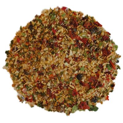 Sůl mořská jemná (max.39%), koření (cibule, pepř červený 5%, paprika, pepř černý, zázvor, medvědí česnek, rozmarýn, šalvěj), třtinový cukr. Může obsahovat stopy celeru, hořčice a sezamu.