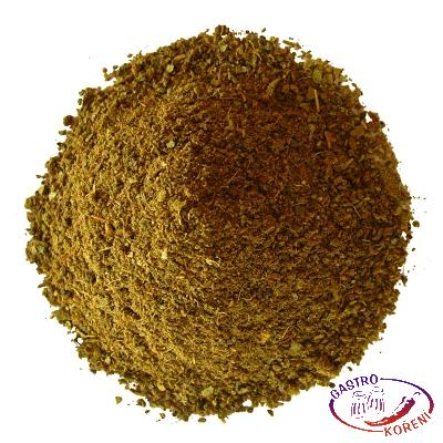 Pepř černý, zázvor, skořice, tymián, bazalka, nové koření, muškátový květ, bobkový list, jedlá sůl 15%. Může obsahovat stopy celeru, hořčice a sezamu.
