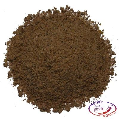 Směs přírodního koření (peř černý, pepř bílý), stabilizátor E 450, antioxidanty E 575, E 300, dextróza, škrob, barvivo E 120. Může obsahovat stopy celeru, hořčice a sezamu.